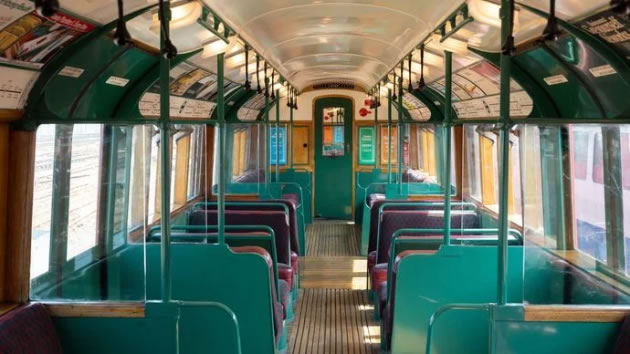 The carefully restored electrified train is made up of four cars complete with green and red moquette seating, grab handles and distinctive Art deco light fittings. London Transport Museum offers the only opportunity to travel on a heritage train on London Underground.
