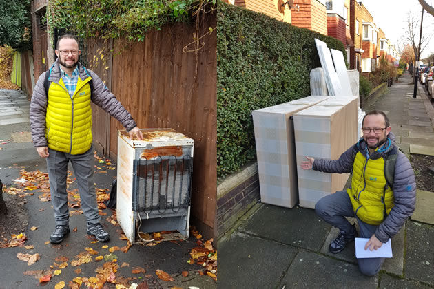 Councillor Gary Malcolm with some examples of fly-tipping in Ealing borough