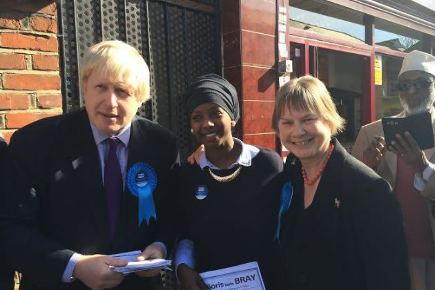 Angie Bray second from right campaigning unsuccessfully with Boris Johnson in South Acton in 2015
