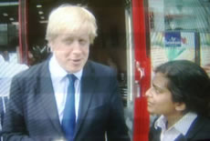 They were spotted by Rupa Huq, Labour blogger and sister of Blue Peter's Konnie, who is standing for election to Ealing Council. She said on her blog , "This lunchtime I encountered BoJo and Angie Bray the millionaire Conservative candidate who only bought a house in the borough on her candidate selection (in posh Chiswick though not proper Ealing) at Ealing Broadway station."