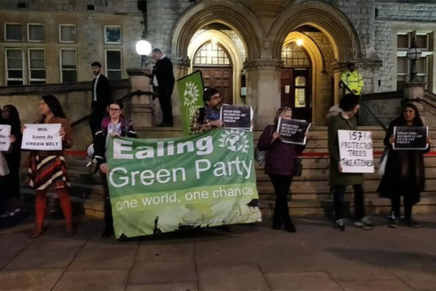 Protestors outside the planning meeting. Picture: Ealing Green Party