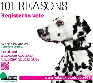 Anyone who is not already on the electoral register should visit www.ealing.gov.uk/vote2014 for more information or email elections@ealing.gov.uk.