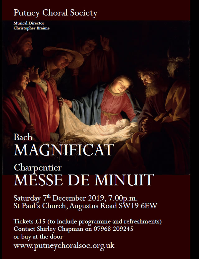 bring an exciting performance of Charpentier’s Christmas Messe de Minuit and Bach’s Magnificat with full orchestra and professional soloists to St. Paul's Church, Augustus Road, Southfields, SW19 6EW on Saturday 7th December 2019, at 7 p.m.