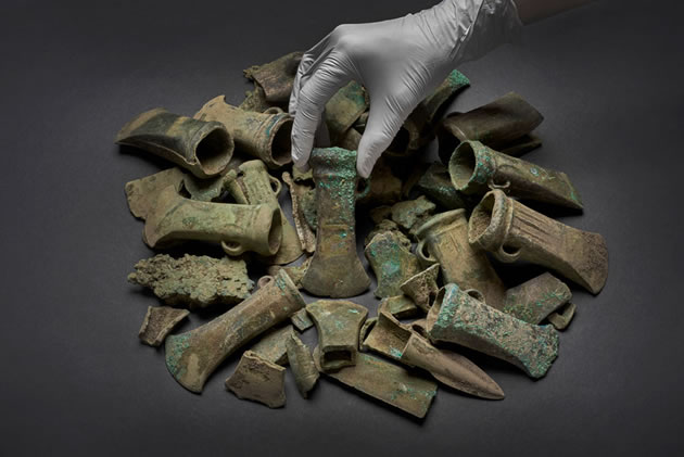 The Havering Hoard, the largest ever Bronze Age hoard to be discovered in London can be seen in the exhibition until 22 August 2021. The Hoard comprises 453 objects dating from between 900BC and 800BC, including a huge number of axes, and weapons such as spearheads, sword fragments, daggers and knives, besides other unusual objects less often found in the UK.