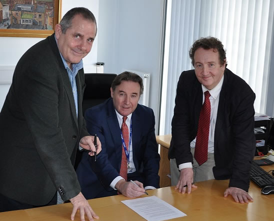(left to right): Cllr Steve Curran, Leader of Hounslow Council, Prof Peter John, Vice Chancellor of University of West London, Cllr Julian Bell, Leader of Ealing Council