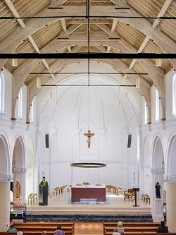The judges said of St Augustine's Church, which also recently won a Royal Institute of british Architects award: " When you step through the doors you enter an inspiring, simple church interior, white walls, light stained roof timbers, clear polished joinery and a wood floor, a building transformed in a refurbishment project in 2017 from the over-painted overdecorated interior which came before.
