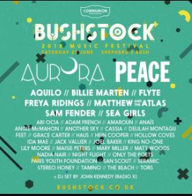 Aurora, who has been writing songs since she was nine (she’s now 21), recently sold out a show at London’s Hoxton Hall, and is enthusiastic about being part of the Bushstock line-up. "It’s going to be intimate and lovely," she says. "We’ll all become one beautiful organism. I’m looking forward to it."