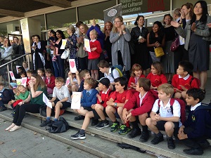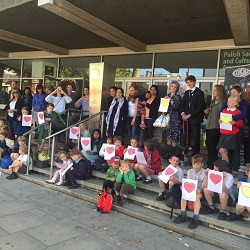 Parents and children from two local primary schools, Brackenbury and John Betts visited the King Street Centre on Tuesday, with many of the children carrying cards decorated with hearts to show their support.