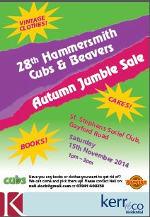 The 28th Hammersmith Cub and Beaver Pack are holding an Autumn Jumble Sale on Saturday November 15 from 1pm till 3pm at St. Stephen's Social Club in Gayford Road.