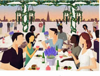 "Pergola on the Roof will be a piece of wintry escapism – a rooftop eatery, covered by a low level wooden structure wrapped in forestry foliage, set against burgundy walls and paved with woody bark. Think silver birch trees, low level lighting, blankets, cedar wood, oaky scents and candle light.