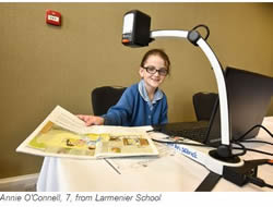 The technology on display included magnifiers which can enlarge text and pictures on electronic tablets and a camera able to focus on writing or images in the distance and transfer them to a handheld device.
