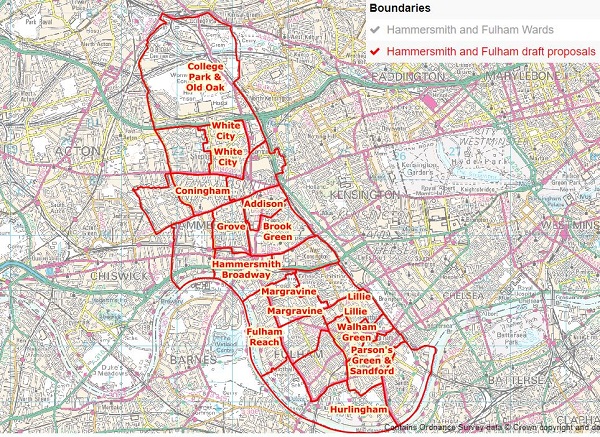 New wards creating by shifting boundaries and splitting up existing wards would be Hurlingham, Parsons Green and Sandford, Walham Green and Lillie in Fulham; Margravine, Grove and Brook Green in Hammersmith and Coningham and White City in Shepherd's Bush.