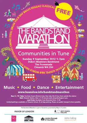 Bandstand Marathon is part of the London 2012 Festival, a 12-week nationwide celebration from 21 June and running until 9 September 2012 bringing together artists from across the world with those from the UK.