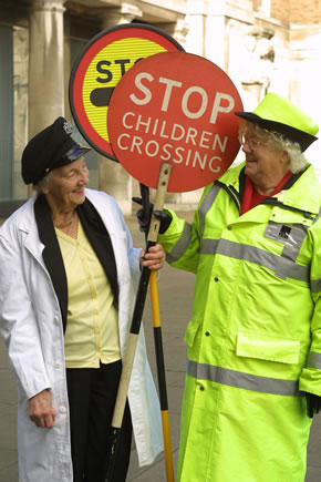 At that time around 90 per cent of children walked to school unaccompanied and also played out on the streets. Children were advised to ask an adult to see them across busy roads, but Jock Brining had the idea of ‘official’ adults to help children on their way to school at points where traffic was at its worst.