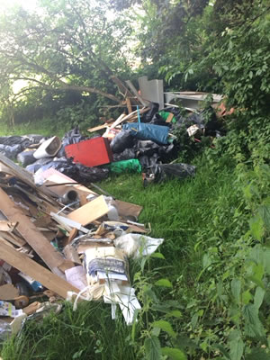 ''They left tracks across the pitch and are leaving rubbish strewn across the field and driving their cars and vans in and out through the south east gate, across the footpath and field with little or no concern for the people walking in the park. A school sports day planned for today has been cancelled as a result. Added to this, in little over 24 hours the beautiful bluebell footpath has become a tip for several tons of building waste. This looks like at least 6 truck loads of rubble.''