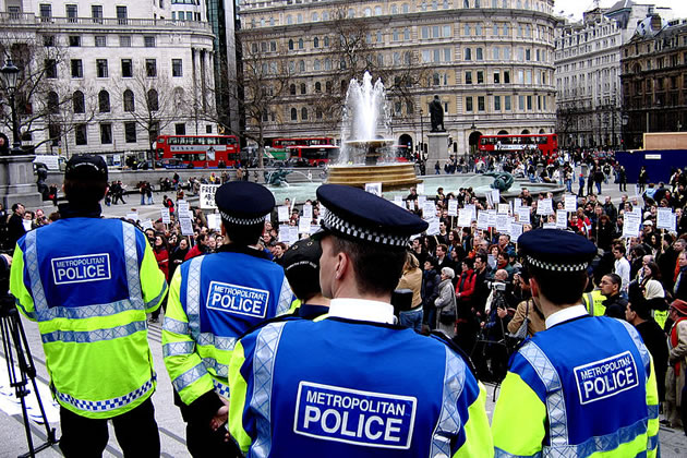 Metropolitan Police Officers at a protest in Trafalgar Square. Picute: CGP Grey