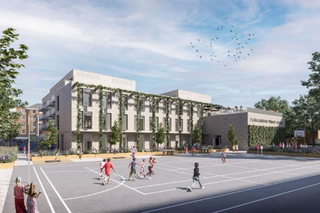 A visualisation of the plan for Flora Gardens Primary School from the planning application
