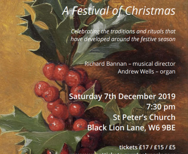 A Christmas Concert will be performed by the Petros Singers at St Peter's Church, Black Lion Lane