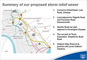 Thames Water has just held a series of public consultations about possible new sites for the Counters Creek sewer, which it says is needed for our sewer system in this area of London to cope with storms without causing basement flooding.