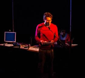 Eventually, after more leaps between the microphone his chair, while images on the screens got more violent, Alipoor posted a few sentences of mind boggling blandness and invited the audience to read them out loud. Some did, then somebody (thankfully) read out one that said 'This is the end of the show ' so we could all go home.