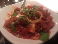 My companion had the Chicken Chilli which again is a Nepalese dish, this time of chicken breast marinated in spices and sauteed with capsicum, onion, spicy tomatoes and fresh green chillies. This was sweet and spicy, like a marinade.