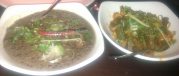 To accompany our main courses we had Nepalese Special Daal (pictured left) and Bhindi Sukha (right). For me the Daal was the highlight of the evening: black lentils cooked with ginger, green chillies, onions and tomatoes, this was mild, simple, creamy and very moorish. The okra was cooked with tomatoes, capsicum and spring onions and was quiet nice but mild, making a good accompaniment to such strong tasting dishes.