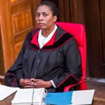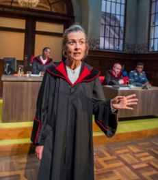 The whole thing is set is a smart German courtroom presided over by the judge (Tanya Moodie).