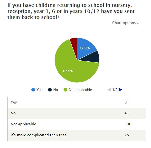 She thanked the ‘many hundreds’ of her constituents who filled out the survey and said, “People are fairly evenly split about how they feel about children going back to school. It was interesting to note that most people had an opinion - only a small percentage had no view.”