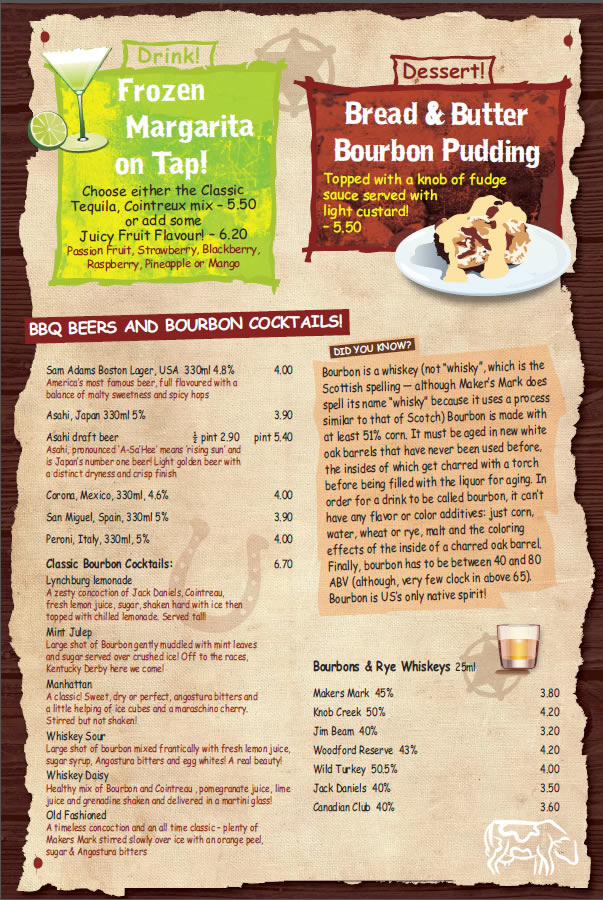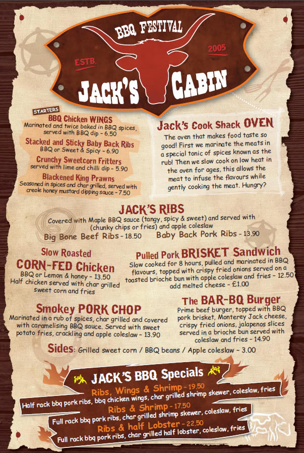 Choose from among Jack's Ribs, Smokey Pork Chop, Slow Roasted Corn Fed Chicken or Pulled Pork Brisket Sandwich and then why not try one of our BBQ beers or Bourbon cocktails to accompany them?