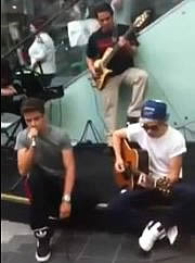 The famous pair surprised visitors to the Shepherd's Bush shopping centre when they strolled along the Southern Terrace last Thursday, August 2, then sat down on a pop-up stage to sing and play their single, What Makes You Beautiful with the help of one of Westfield’s house bands, Soul Chango.