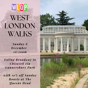 Ealing to Chiswick, 8km: Meeting outside Ealing Broadway station at 10:15, we’ll set off at 10:30 walking through Ealing Common and Gunnersbury Park ending at Hole in the Wall (Previously Queen’s Head) in Chiswick where you are welcome to join us for our Sunday Roast Social.