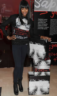 Supermodel Naomi Campbell dropped in at Westfield on Friday (February 26) to promote a designer T-shirt which is being sold to raise money for the people of Haiti.