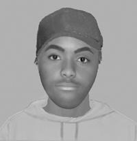 The suspect is described as a mixed race male, approximately 16-18 years of age, five foot seven inches tall, of lean/athletic build with black hair, wearing a cream/beige baseball cap, neutral coloured sports top and loose fitting jeans (hip hop style).