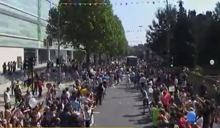 Thousands of enthiastic local people lined the streets of Shepherd's Bush on Thursday afternoon to welcome the Olympic Torch as it travelled around the area, taking in local landmarks such as Shepherd's Bush Green, the BBC and Loftus Road Football Ground.