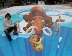 Edgar Mueller created a scene from the movie Ice Age 3 on the pavement outside Westfield.