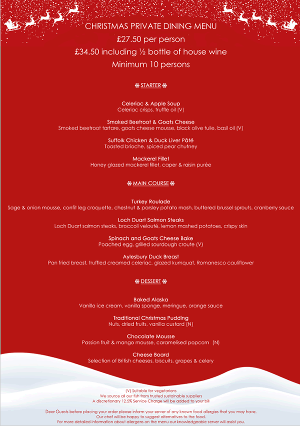Pictures, our in-house restaurant located on the ground floor, offers luxurious Christmas packages from £27.50 per person! Indulge our exquisite 3 course Christmas Menu featuring our famous Turkey Roulade with sage & onion mousse, confit leg croquette, buttered Brussels sprouts and drizzled with our homemade cranberry jus. But make sure you leave room for dessert! As our traditional Christmas Pudding is the perfect end to a delightful menu that will keep you jolly!
