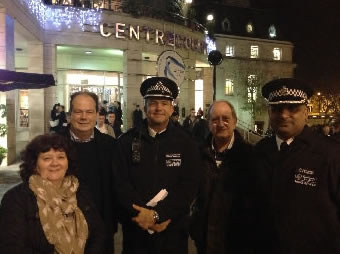 Walking through Centre Court shopping centre and around the town centre distributing police reassurance literature, Stephen and his colleagues praised the work of the Borough Commander and his team for the overall reduction in crime during the past ten months and thanked them for the work being done to ensure public safety during the festive season.