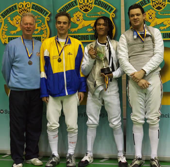 Foil L-R Brian Harkins Wimbledon bronze, Ian de Whalley, Warren Freeman-Birch Salle Coton gold and Christopher Coton Salle Coton silver. Pic credit: Tim Schofield