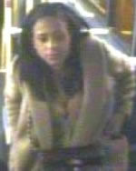The suspect (pictured left and right) is described as a light-skinned black woman, aged between 23 to 33, slim and wearing a long light brown coat.