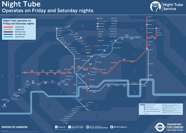 Gareth Powell, London Underground's Director of Strategy & Service Development, said: "The introduction of the Night Tube is a historic step in our modernisation of the Underground. The Night Tube map shows our customers exactly when and where they can use this landmark service, which will make their late night journeys quicker and easier than ever before. As well making life easier for people, the Night Tube will also boost London's night-time economy - supporting thousands of jobs and stimulating hundreds of millions of pounds in economic growth."