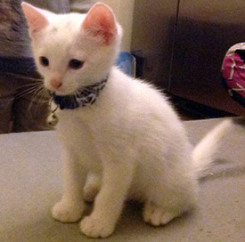The six-month-old white cat (right) was found dead on Thursday May 15 in a run-down building in Christchurch Close.