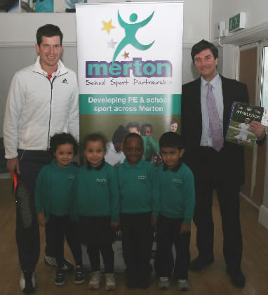 Tim Henman visited a Merton primary school to spot young sporting talent and give pupils tennis lessons as part of the Wimbledon Junior Tennis Initiative.