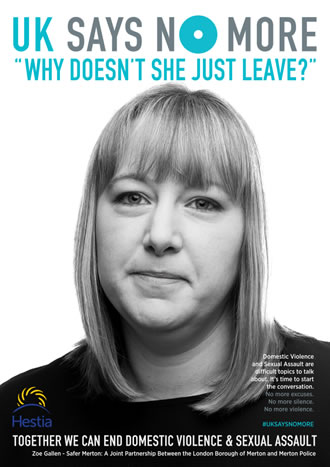Zoe, the council’s strategic lead for domestic violence and abuse, appeared on posters online and around the borough to help promote UK SAYS NO MORE. This national campaign is a partnership between London-based charity Hestia and NO MORE in the United States.