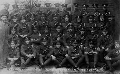 Wimbledon's Own (pictured right) was one of the last of the 'Pals' battalions to be formed during the First World War. The Telegraphist Section were members of the 190th Brigade of the Royal Field Artillery and would have trained and camped on Wimbledon Common.